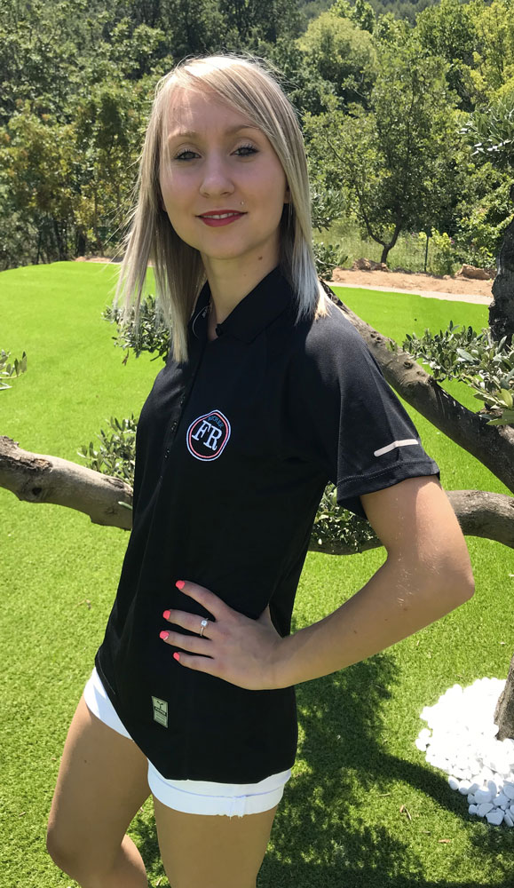 Polo femme famille rocher 100% polyester noir avec broderie