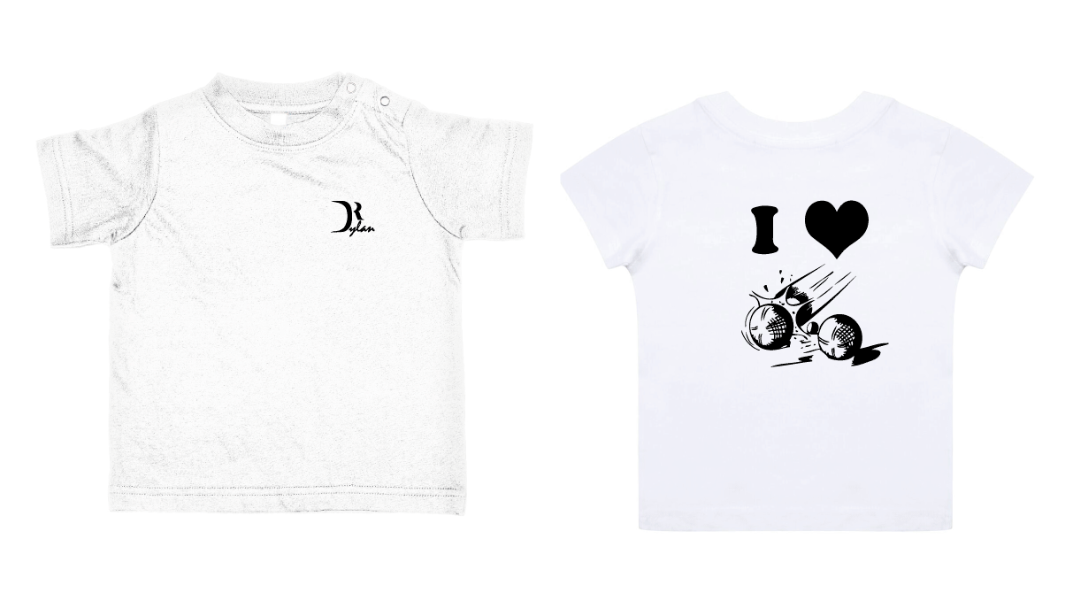Tee-shirt bébé I love pétanque 2 pressions au coL